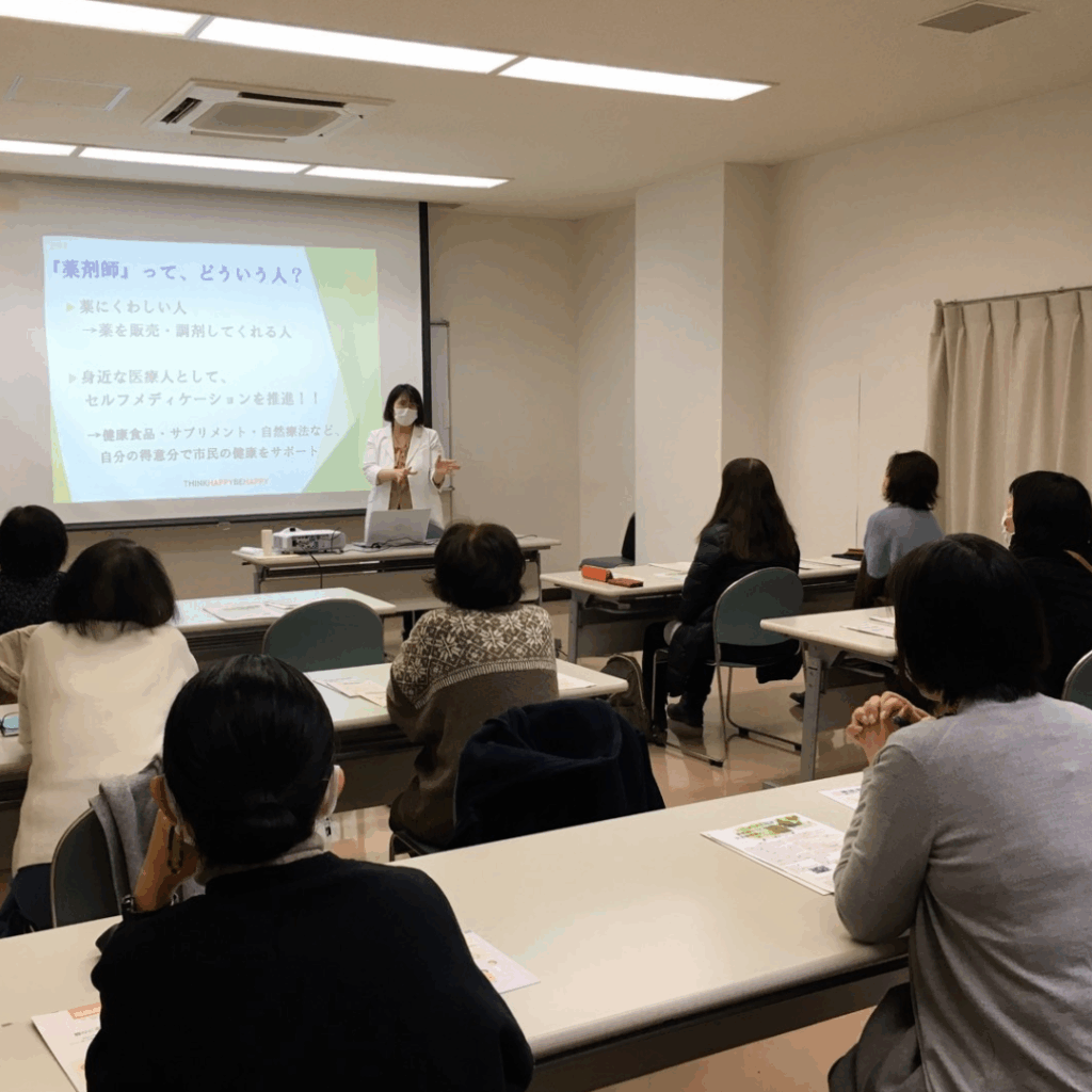子育て中のパパ・ママ向けの「薬剤師さんのはなし」、小学生向けの「職業体験」、地域の方向けの「生涯学習講座」や「イベント出展」など、当店の強みである『自然療法』『薬剤師』『英語スキル』を活かした活動を行っています。イベント開催日時などについては、当HPの新着情報にて随時お知らせさせていただきます。