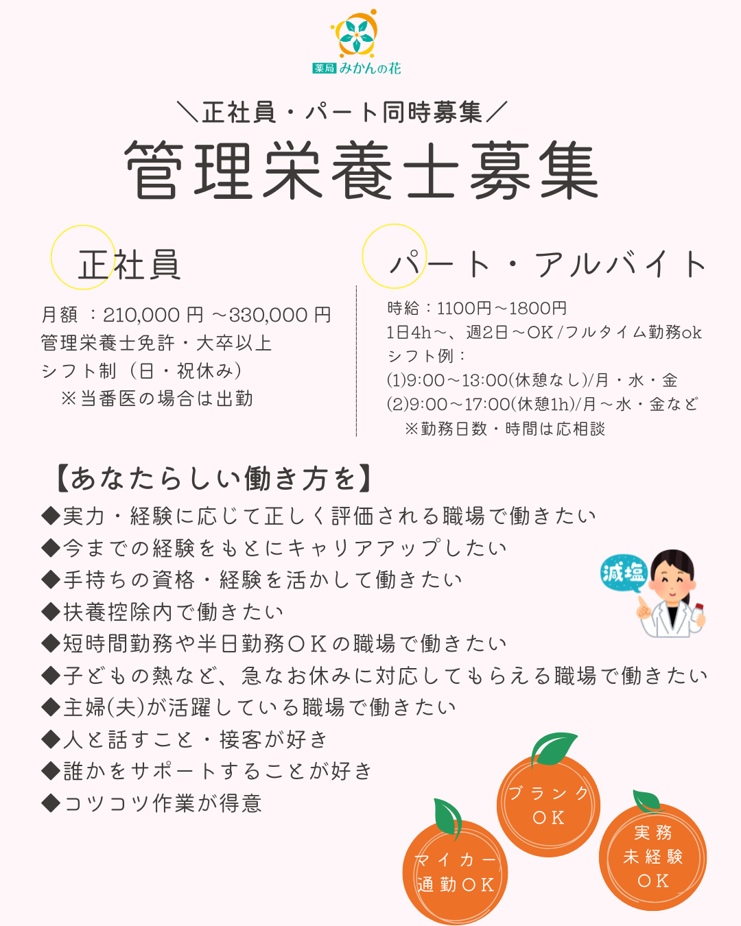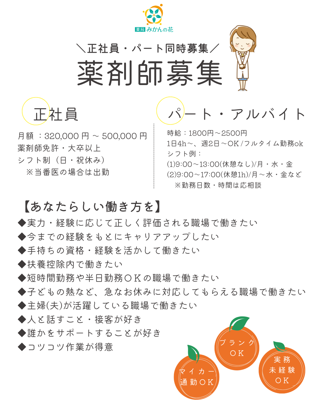 THINKHAPPYBEHAPPY/薬局みかんの花では随時スタッフを募集しております。